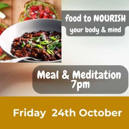 Try a Friday night out with a difference! The evening starts at 7 pm with 30 minutes of relaxing guided meditation to let go of all the stresses and strains of the week, followed by a delicious three-course plant-based meal and complimentary drinks. Each month a new mouth-watering plant-based menu is lovingly prepared. Gluten-free options are available.